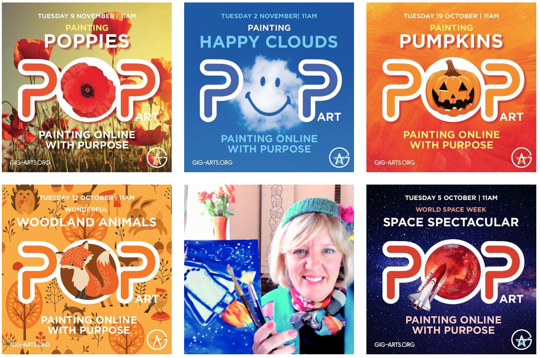 Throughout the entire Covid lockdown Abbie’s ran weekly Gig-Arts charity painting events and delivered daily motivational messages. This led to the innovative creation of POP - Painting Online with Purpose - which is a painting event designed to motivate and boost creativity. It still continues at - www.gig-arts.org - and now enjoys large live events once again.