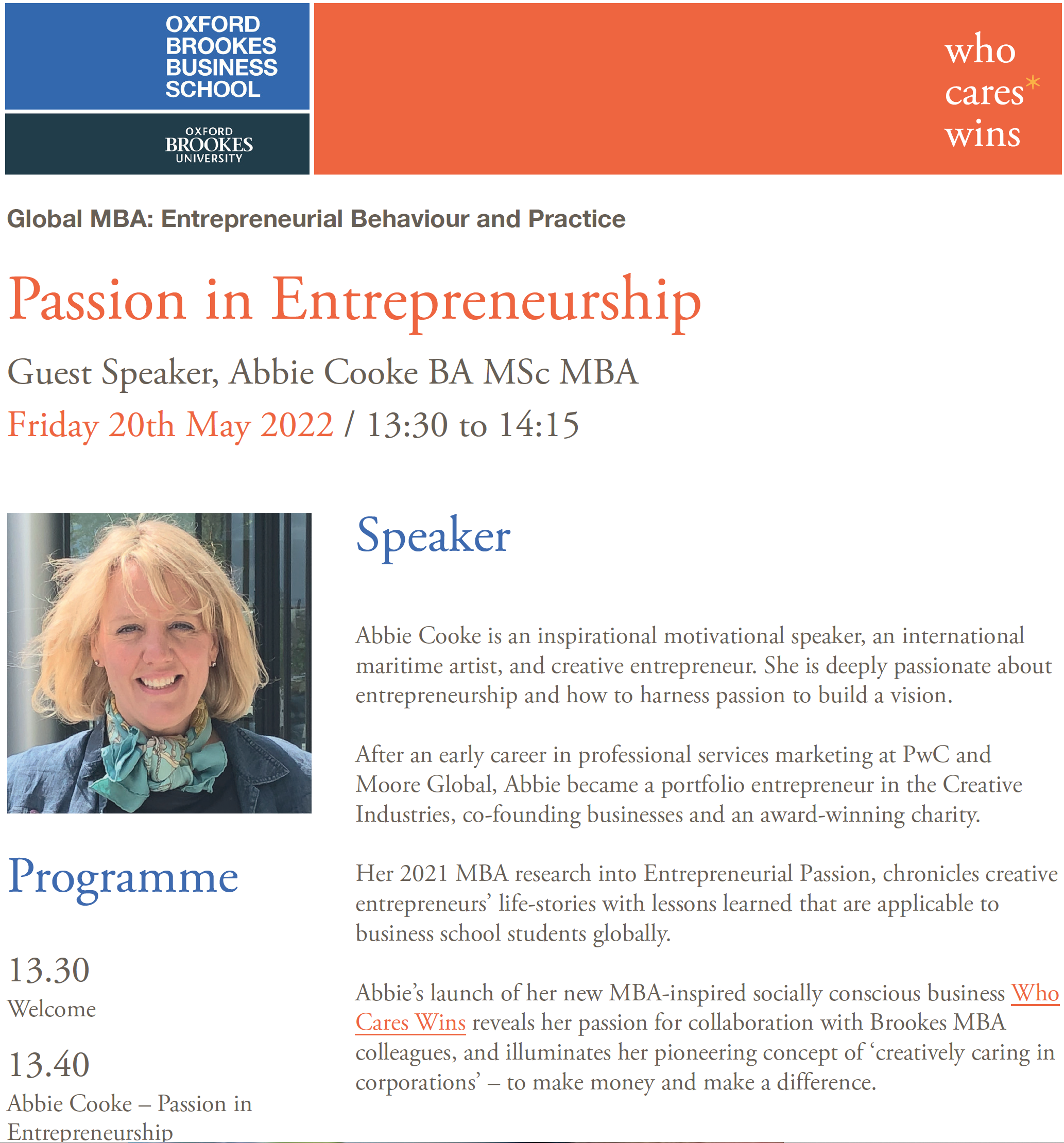 As an additional outcome, Abbie and colleagues set up a new business venture - www.who-cares-wins.co.uk - providing online and in person events and coaching and more!